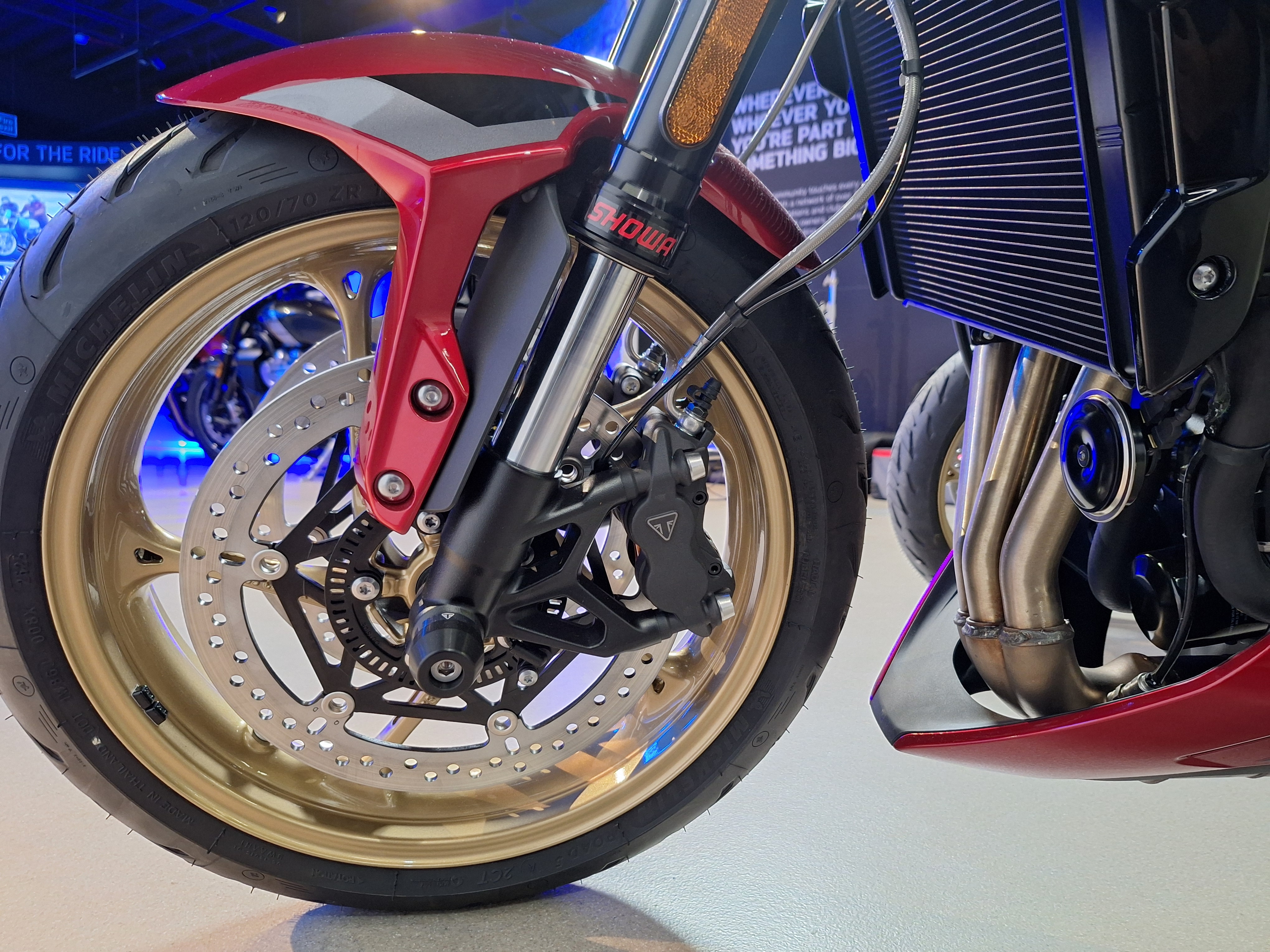 Au milieu des modèles iconiques de la marque, trônait donc l’ultime nouveauté de Triumph, cette Triumph Trident 800, que nous avons pu découvrir sous toutes les coutures.