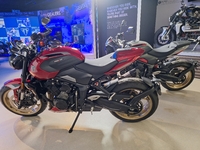 Elle dispose de trois modes de conduite, Road, Sport et Rain, qui adaptent la réponse de l’accélérateur et le contrôle de traction aux conditions. L’ABS optimisé en virage et le contrôle de traction, sensibles à l’inclinaison, renforcent la confiance dans les virages en utilisant des données en temps réel pour ajuster le freinage et la puissance en fonction de l’angle d’inclinaison. La puissance est transmise par une boîte de vitesses à six rapports, tandis que le Triumph Shift Assist permet de passer les vitesses sans embrayer. Le régulateur de vitesse ajoute quant à lui un confort supplémentaire lors des longs trajets.